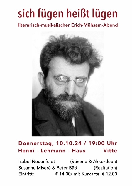 literarisch-musikalischer Erich-Mühsam-Abend im Henni-Lehmann-Haus Vitte