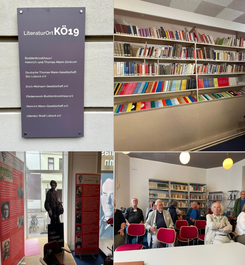 Seit Anfang des letzen Jahres hat die Erich-Mühsam-Gesellschaft eine neue Adresse. Wir sind nun gemeinsam mit der Thomas-Mann-Gesellschaft, der Heinrich-Mann-Gesellschaft, dem Förderverein Buddenbrookhaus und dem Verein Literaturstadt Lübeck im LiteraturOrt KÖ 19 in der Königstr. 19, 23552 Lübeck zu finden. Das Haus befindet sich in unmittelbarer Nachbarschaft zum Willy-Brandt-Haus und zum Günter-Grass-Haus. Wir haben nun nicht nur einen Raum für unser Archiv und die Bibliothek, sondern auch einen Veranstaltungsraum für bis zu 35 Personen. Das eröffnet neue Möglichkeiten.