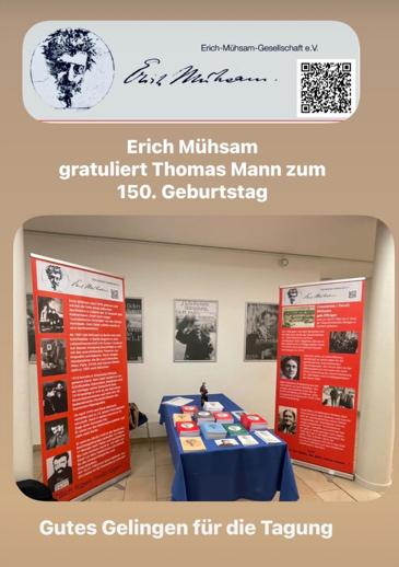 findet aus Anlass des 150.Geburtstages von Thomas Mann die Thomas-Mann Tagung in Lübeck statt. Die Erich-Mühsam- Gesellschaft wird dort mit einem Infostand teilnehmen.