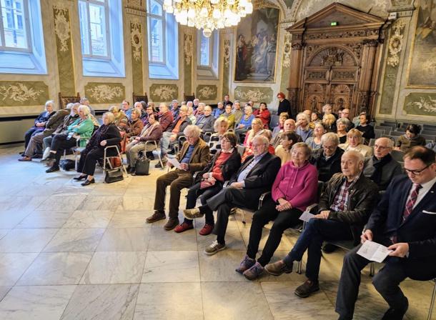 „Wenn zu einem 147.Geburtstag noch so viele Menschen kommen, dann ist das ein Zeichen, dass ein Mensch nicht vergessen ist“, sagte Bürgermeister Lindenau in seiner Begrüßung zur gemeinsamen Veranstaltung der Hansestadt Lübeck und der Erich-Mühsam- Gesellschaft am 06.04.2025 in voll besetzten Audienzsaal des Lübecker Rathauses.